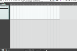 Powiększamy widok w poziomie za pomocą klawisza kursora w górę tak, aby obejmował obszar nieco większy niż cztery takty. Upewniając się, że mamy włączoną funkcję przyciągania do siatki tempa wciskamy klawisz Cmd/Ctrl i przeciągamy kursorem na odcinku czterech taktów. W ten sposób stworzymy pusty klip MIDI, na którym będziemy mogli programować nuty wyzwalające dźwięki instrumentu aktywowanego na ścieżce.